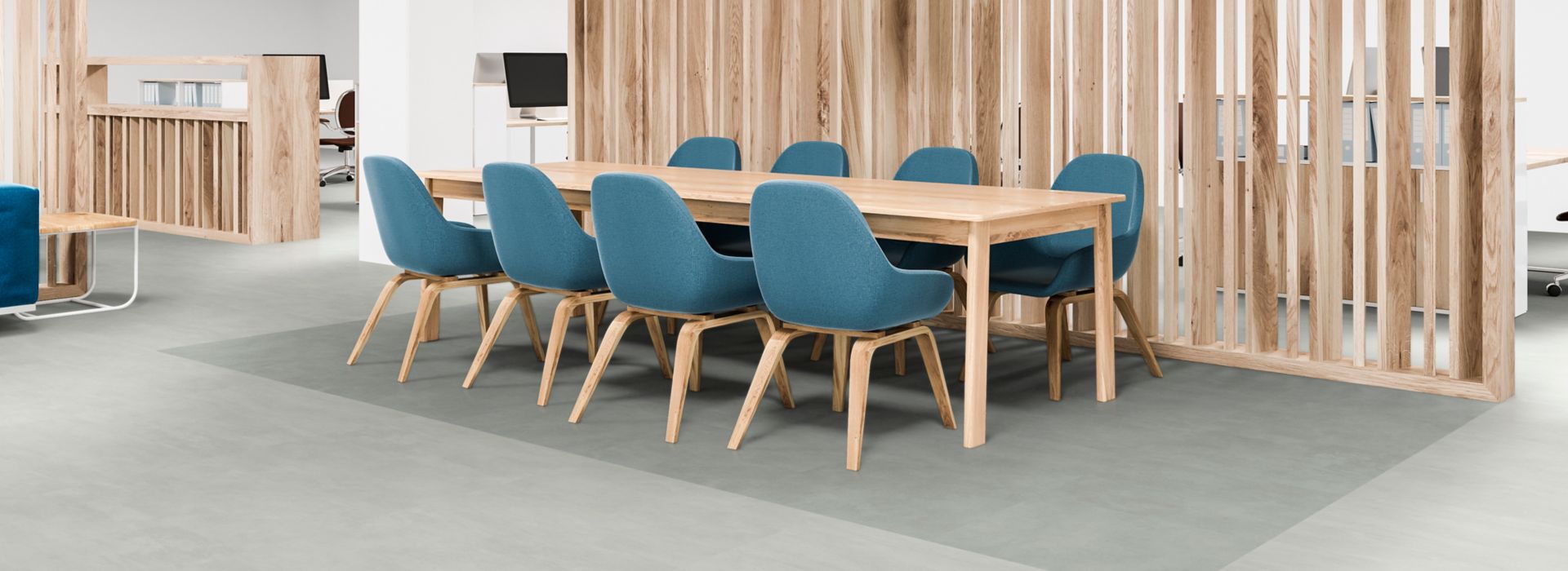 LVT: True Earth Woodgrains, Rye Oak, Herringbone, Oyster, Non Directional; CARPET: Composure, Sapphire, Non Dirctional, Stippled Hues, Azure, Ashlar