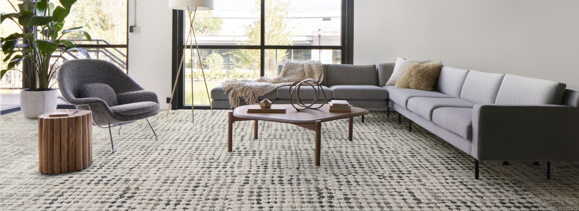 Combina la artesanía hecha a mano con el diseño moderno para soluciones de piso flexibles. Usa estos estilos de alfombra modular juntos o por separado.